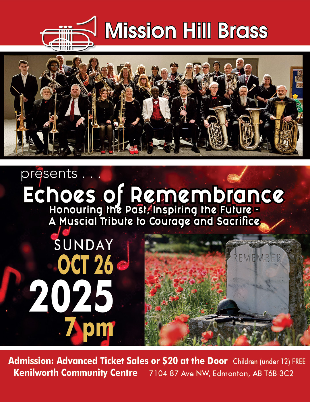 Honouring the Past, Inspiring the Future – A Musical Tribute to Courage and Sacrifice. Admission: Advanced Ticket Sales or $20 at the Door | Children (under 12) free.